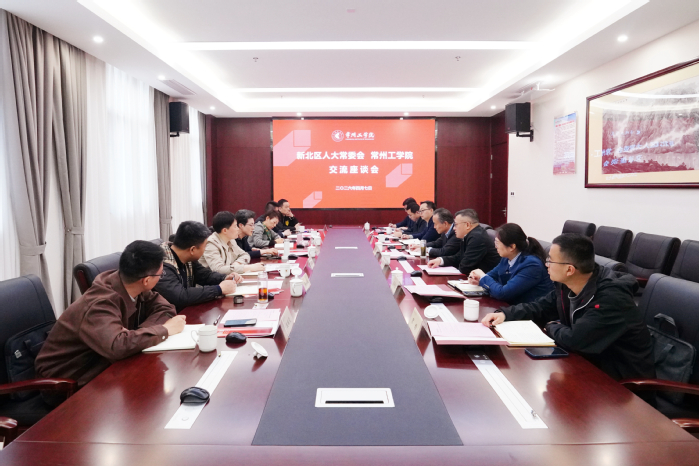 4月7日,新北区人大常委会主任、党组书记韩雪琴一行来校调研,就深化校地协同、推进融合发展进行交流。校党委书记汤正华、校长张兵、相关职能部门负责人与来宾座谈。